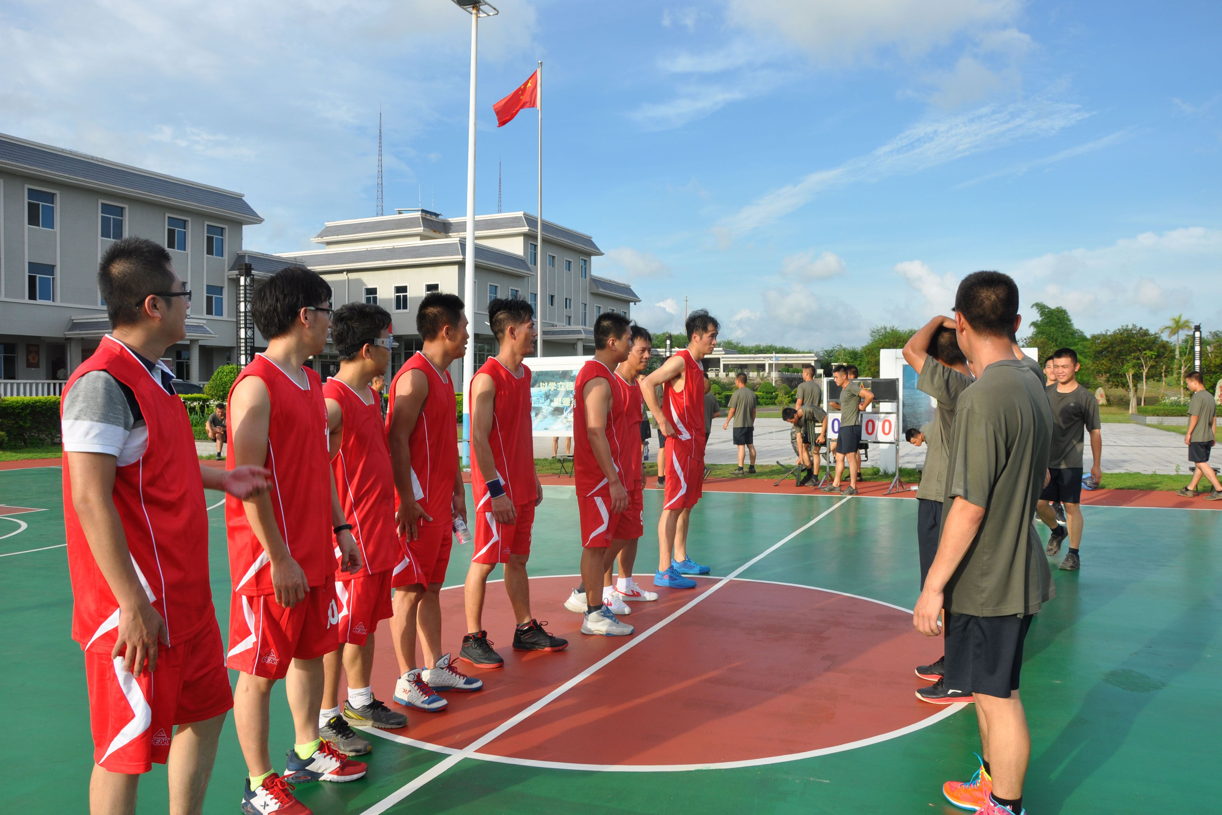 隨后,慰問(wèn)團(tuán)與邊防官兵舉行了一場(chǎng)籃球友誼賽。激烈的賽事過(guò)后,邊關(guān)官兵隊(duì)伍以55:38比分勝出。在公平的體育競(jìng)技下雙方友誼進(jìn)一步加深。戰(zhàn)士們不屈不撓的拼搏精神,令慰問(wèn)團(tuán)再次產(chǎn)生由衷的敬愛之情。雙方在營(yíng)地共進(jìn)晚餐后相互交換支部聯(lián)系方式,為日后建立更緊密的組織關(guān)系創(chuàng)造條件和基礎(chǔ)。
