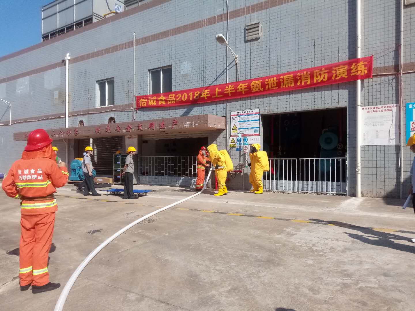 2018年怡誠食品安全生產(chǎn)演練培訓(xùn)系列活動于4月下旬開始在公司生產(chǎn)車間、液氨制冷機房、廠區(qū)過道、員工生活區(qū)等區(qū)域分項目,分小組、分批次反復(fù)進行。采取專業(yè)知識和實際技能同時重視,平行培訓(xùn),交錯考核的模式,進行了涉及公司全體員工的安全培訓(xùn)演練活動。
