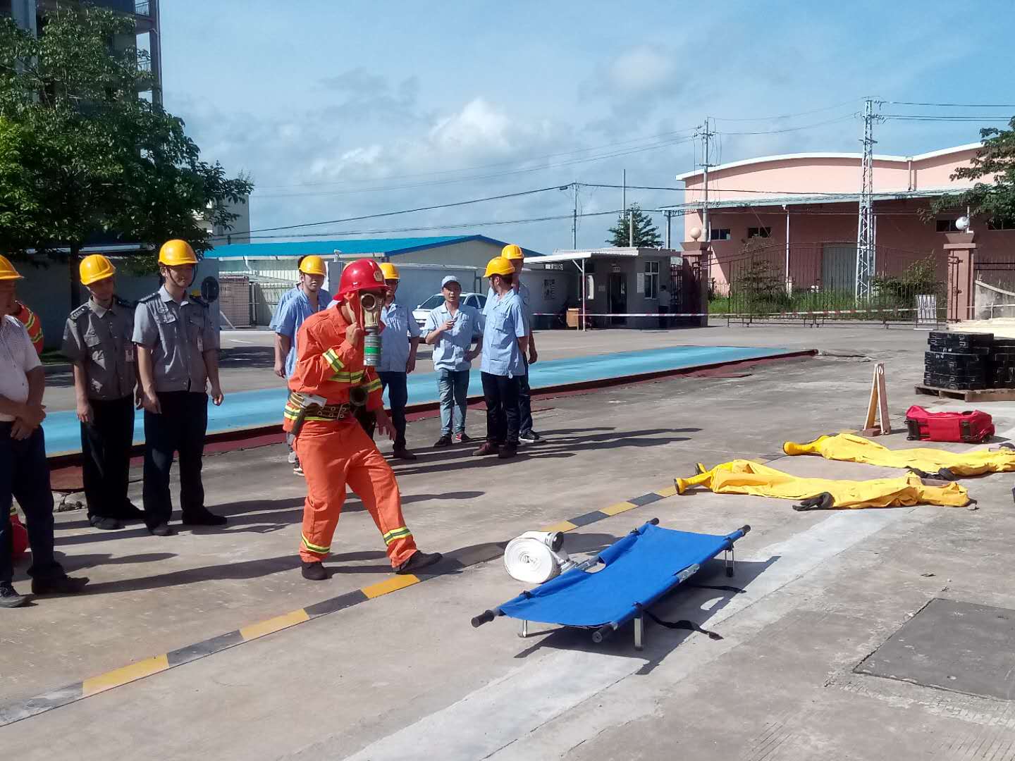 5月20日,由公司安全負責人、總經(jīng)理辦公室下發(fā)方案,企業(yè)黨支部動員,安全環(huán)保工程部組織,氨制冷動力部門,人事行政部門,后勤安保應(yīng)急隊伍協(xié)助聯(lián)合舉行的大型液氨泄漏消防救援應(yīng)急演練取得了顯著的效果。演練活動針對液氨泄漏處理,消防搶險救援,應(yīng)急隊伍協(xié)作機動性,人員疏散組織四個重點,進行了高標準的強化訓(xùn)練。演練過程中安全環(huán)保工程部根據(jù)現(xiàn)場狀況臨時加入突發(fā)事件元素,鍛煉應(yīng)急隊伍的緊急應(yīng)變能力。對防化服、空氣呼吸器穿戴、滅火器具、各類消防器材使用等方面,不僅要求應(yīng)急隊伍能有效準確地運用器材,而且操作反應(yīng)速度要達到設(shè)定的標準,對器材的使用熟練性進行了嚴格的考驗。
