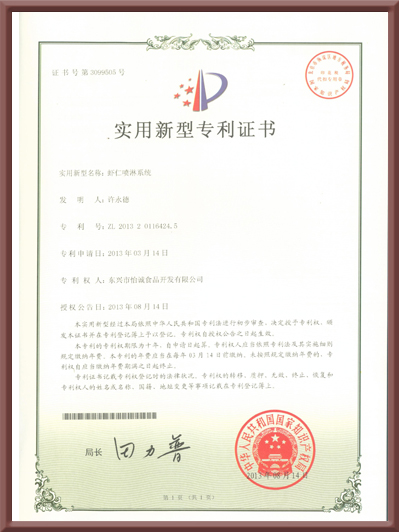 實用新型專利證書(蝦仁噴淋系統(tǒng))