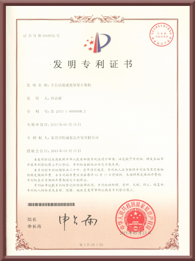 發(fā)明專利證書(全自動夏威夷堅果開果機)