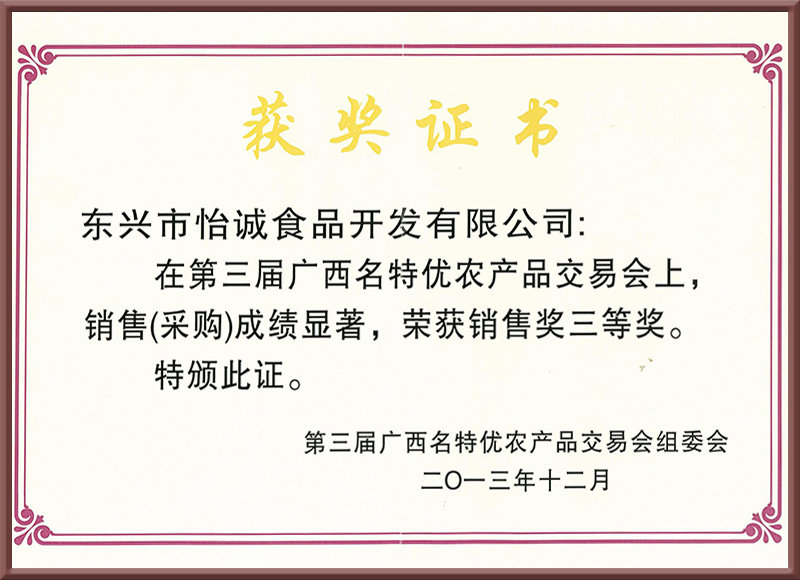 名特優(yōu)農(nóng)產(chǎn)品銷售獎項證書