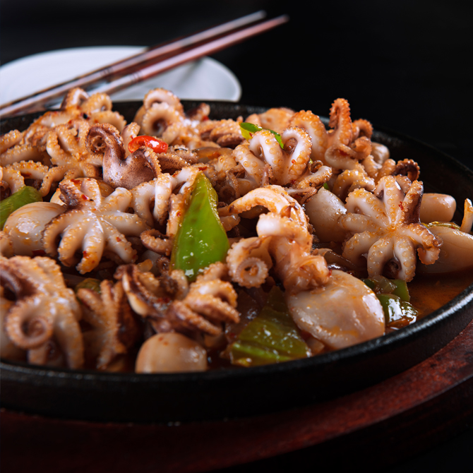 配料:八爪魚、青椒、辣椒、蔥、姜、生抽、料酒