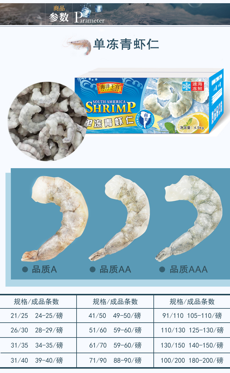 海洋王宮單凍青蝦仁4.5kg
